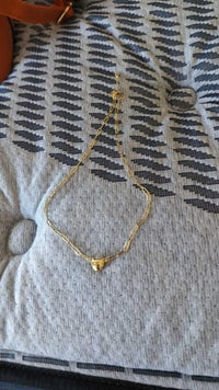 I bought this necklace for my partner, and it was a huge hit! The magnetic heart feature is so clever – the hearts come apart and reconnect with magnets. The gold looks amazing too